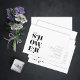 Een vette, decoratieve doopvont vangt onmiddellijk uw oog en plaatst de toon voor de meeste stukken van deze moderne, minimalistische trouwreeks. De huwelijksbruid-doucheuitnodiging hier bevat een typografie-ontwerp van 'vrijgezellenfeest', en geeft de details van je evenement, terwijl je een nikpeek van je bruiloft-esthetiek en -stijl als een stel aanbiedt. Zoek ID887 om alle producten in deze trouwreeks te zien.