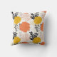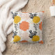 Naadloos patroon met bloemen, zwarte bladeren en takken op een witte achtergrond. De bloemen zijn oranje, geel en wit. De bladeren zijn zwart en de takken zijn grijs. Het patroon wordt herhaald en de bloemen worden in willekeurige volgorde gerangschikt.