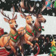 Decoratieve Christmas Stripes thema Pattern Design met sneeuwvlokken, rendieren, kerstsnoepriet, kerstbomen, elf, kerstman, sneeuwpopsterren en kerstballen naadloze herhaling patroon Design WALL WALLPAPER