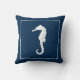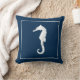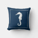 Witte zee paard op een blauw marineschip. Zie alle coördinerende kussens design en kunst prints bij Sandy Feet Studios.