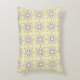A decorative pillow featuring a symmetrical geometric pattern with blue, white, and brown hues shown from the front and back on a gray background.