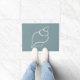 Een grote seashell decoreert dit stoffige blauwe doormat. Het ontwerp komt uit de oorspronkelijke kunst.