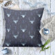 Deze werpkussens hebben een trendy patroon van hertenkopsilhouettes met krullende geweien, gestileerde pijlen en kleine sneeuwvlokken in kaasschoppen blauw en leisteen op een blauw marineklein. Zoek ID861 door ID864 om extra kleurenopties en andere producten in deze moderne, kerstontwerpopening te zien.