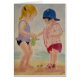 Een altijd wenskaart dat een charmante bijna sprookjesillustratiekwaliteit bevat. Ideaal voor gebruik tijdens de zomertijd als een uitnodiging of eenvoudige "Hallo".