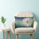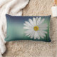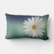 Een serene foto van één delicaat met madeliefje. Zachte, fijne witte bladen met een helder geel midden. De achtergrond is een mistachtig groenblauw kleur.