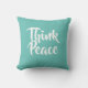 Eenvoudig kussen gooien met een zachte herinnering om aan rust te denken. Solide blauwgroen achtergrond met witte tekst.