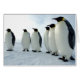 Cette photo est constituée d'un groupe aligné d'empereurs pingouins.