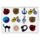 Composition graphique mignonne : coccinelle + hibou + ancre + symbole yin-yang + un vélo couleur + note musicale + un chat noir + boussole_rose + un casque de musique