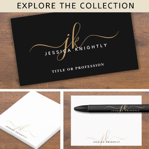 Modern Gold Black Stylish Script Monogram InitialsConçu par Wendy Rowley