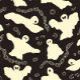 Un motif d'Halloween sympa avec des petits fantômes, des chaînes et des chaînes couleur crème, posé sur un solide arrière - plan non noir. Il s'agit d'un motif fixe, mais vous pouvez modifier la taille et la position du motif et ajouter votre propre texte.