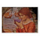 Tableau vintage de John William Waterhouse qui a été donné un look "en détresse". Jeune femme tenant un bol bleu à ses lèvres. Dans l'arrière - plan est un navire.