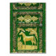 Photographie d'une caravane traditionnelle tzigane peinte détail de wagon avec un cheval d'or sur un arrière - plan peint en vert, photographié à la foire des chevaux Appleby, à Cumbria, Angleterre, où se réunissent chaque année des tziganes.