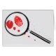 Een magnifiek glas dat een vingerafdruk en bloedspatten uitstraalt.
