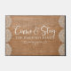 Een moderne kalligrafische deur die je echt welkom maakt. Een groot geschenk voor nieuwigheden of nieuwe huiseigenaars, onze douane komt en blijft slaapbij in elegante burlap en laat functies "Kom en blijf" in een modern, elegant handgeschreven kalligrafiekscript zien. Geef uw familienaam een persoonlijk tintje in de klassieke vorm van witte letters. Ontworpen voor jou door Blackberry Boulevard.