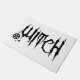 Een tekening van een pentakel en het woord "heks" in een griezelige lettersoort.