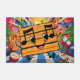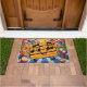 Een cartoon deurmat met een grote glimlach en muzieknoten voor ogen danst met vreugde naast een gitaar, drums en een trompet. Welkom uw dierbaren in stijl met deze - Amusante kleurrijke muzieknoten Design For Your Feet Before Enter Deurmat.