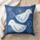 Cet oreiller à lancer hivernal illustre deux colombes blanches entourées de flocons de neige bleu clair sur un arrière - plan bleu foncé. Le revers de ce coussin carré est orné d'un motif de flocons de neige et de cristaux de glace.