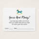 Ces cartes simples et mignonnes sont suffisamment polyvalentes pour être éditées de bien des façons que vous jugerez appropriées. À l'aide d'une police de script manuscrite moderne, l'en-tête indique "Devinez combien ?" Voici les instructions du jeu et un autre champ pour les devinettes et les noms des joueurs dans une police sans-serif décontractée et moderne. Tout le texte a été placé sur un simple arrière - plan blanc que vous pouvez changer à n'importe quelle couleur que vous souhaitez. En haut de l'avant et en bas de l'arrière, il y a une seule image graphique d'un cheval à bascule coloré, qui convient à une douche sans sexe. // Conçu par Melody Watson pour Paper Muserie.