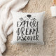 Travel cite le coussin avec lettrage à la main design typographie de police. Joli et sucré. Explorez. Rêvez. Découvrez. La couleur Arrière - plan peut être customisée à la couleur désirée.