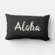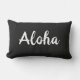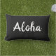 Cet amusement, coussin extérieur noir et blanc est décoré de la salutation tropicale, Aloha, faisant lui l'accessoire parfait pour le bateau, à maison de plage, à maison de piscine, à patio, à plate-forme ou à espace piscine. Ce coussin coordonne parfaitement avec plusieurs autres coussins extérieurs dans la collection extérieure de coussin de PrettyFancyPillows.