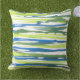 D'extérieur Aquarelle bleu vert Abstrait rayures Coussin
