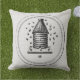 Un coussin extérieur de sembler blanc de toile de jute avec une image vintage de ruche.