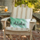 Ce coussin extérieur ludique et tropical est décoré de feuilles de palmiers sur un arrière - plan blanc et lumineux et accentué avec le dicton mignon, Aloha, en faisant l'accessoire parfait pour l'été pour le bateau, maison de plage, maison de piscine, chalet, patio, terrasse ou zone de piscine. Le côté opposé de la coussin est seulement feuilles de palmiers, vous permettant plus de flexibilité avec vos besoins de décoration. Ce coussin se coordonne parfaitement avec plusieurs autres coussins extérieurs de la Collection de Coussins extérieurs de PrettyFancyPillows.