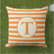 D'extérieur Coussin rayé orange et beige de monogramme