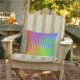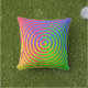 Ce coussin extérieur coloré dispose d'un motif arc-en-ciel en spirale abstrait tourbillonnant autour d'une cible centrale dans les couleurs vert, bleu, jaune, orange et rouge.