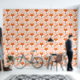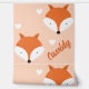 Kinderen naam vossendierenbehang met een patroon van schattige cartoon vossengezichten en harten op een lichte oranje achtergrond. Voeg de naam van je kind toe en pak vandaag nog dit schattige behang! Dier Schattige Fox Kinder Naam Wallpaper Holidayday Design | ©Melissa Patton - Kunstenaar/Illustrator