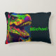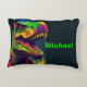 Dino T Rex Cute Kinder Accent Pillow T Rex Dinosaur in verschillende tinten van diep rood, blauw, geel, met aarde vertoon groen. Geweldig voor jongens of kinderen. Archeology Lover. Dierlijke evolutie die uitgestorven is in een Retro Art Pop Style, Jussica, Prehistorische era en Reptile.
