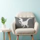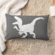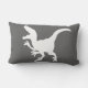Dinosaur-kussen in grijs met een witte raptor-silhouet.