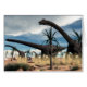 Diplodocus dinosauriërs lopen tussen rotsen en williamsonia-bomen in de woestijn