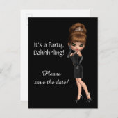 Fun diva verjaardagsfeest opslaan van de datum briefkaarten. Voeg uw gegevens toe in de lettertypestijl en -kleur en de tekst van uw keuze. Je kunt ook de achtergrondkleur wijzigen op dit diva verjaardagsfeest briefkaart.
