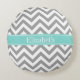 Dk Gray White LG Chevron Turquoise Name Monogram Rond Kussen