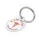 Een witte kaducus op een rode en witte cirkel rust op een stevige witte achtergrond die douane rode sjablonen voor uw gepersonaliseerde formulering heeft.