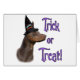 Sera-t-ce des Tricks ou des Traitements pour cet Halloween ? Notre design de vacances a votre race de chien préférée, le Doberman Pinscher, portant un casquette de sorcière. Ajoutez un peu de "Hocus Pocus" à All Hallows cette année !