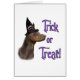 Zal het Trick ors treat zijn deze Halloween? Ons vakantieontwerp heeft je favoriete hondenras, de Doberman Pinscher, met een heks pet. Voeg dit jaar een beetje 'Hocus Pocus' toe aan All Hallows!