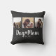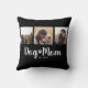 Celebrate your bond with your furry best friend using this adorable and elegant script font 3 photo Dog Mom throw pillow featuring 3 loving photo moments. Perfect for any proud dog mom who adores her pup and wants a stylish reminder of unconditional love. Swap out images with your favorite pictures of you and your dog.