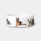 Een collectie van digitaal verbeterde afbeeldingen toont een verscheidenheid aan honden en katten tegen een grimmige witte achtergrond. Het eerste afbeelding is voorzien van een kleine, lichtbruine hond met een speelse uitstraling, versierd met een grote bril en een rood-zwart geblokt stropdas. Het tweede afbeelding cadeaus een mopshond dragen van een zwart pet met een rode band en een rode boog stropdas, vergezeld van een spandoek met de tekst "I LOVE PUG". Het derde afbeelding vangt een husky met opvallende blauwe ogen, liggend en direct kijkend naar de toeschouwer. Vervolgens wordt een Duitse herder afgebeeld in een ontspannen houding, liggend met zijn voorpoten gekruist. Het vijfde afbeelding shows een Siamese kat naast een Duitse Herder pup, beide kijken naar de camera. Het zesde afbeelding toont een Pommerse hond die een witte bandana draagt met zwarte pootafdrukken, rechtop zit en lacht. Ten slotte wordt een kleine hond in een witte handdoek gewikkeld, met alleen zijn gezicht zichtbaar. De afbeeldingen worden digitaal verbeterd met een strakke, heldere esthetiek, waarbij de onderwerpen tegen de witte achtergrond worden benadrukt.