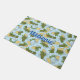 Gevulde druivenbladeren met rijst en kruiden. Lemonplakken, dille, nertsbladeren en tzatzikidakis dip. Aangepaste achtergrondkleur. Naadloos patroon. Aangepaste tekst.