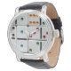 Win het spel tegen de tijd met dit coole en kleurrijke horloge. U kunt op de knop "Aanpassen" klikken en het dominoontwerp verplaatsen om verschillende kleuren en stippelpatronen op de wijzerplaat te krijgen en de grootte van de dominostenen omhoog of omlaag.