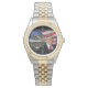 Donald J. Trump, 45e President, Inhuldiging op 20 januari 2017. Fotoportret van Trump met op de achtergrond wapperende Amerikaanse vlag. Dit prachtige herdenkingsaandenken om het horloge te behouden maakt een geweldig kerstcadeau voor de Trump-supporter.
