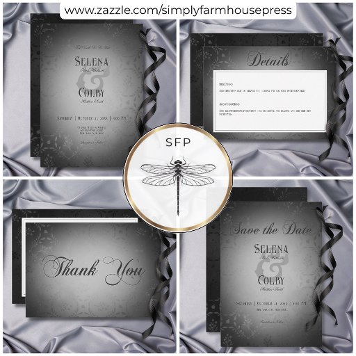 Omarm de mysterieuze allure van je speciale dag met dit geïnspireerde ontwerp. Dit eenvoudige, donker elegante bruiloft uitnodiging ontwerp heeft een achtergrond van zwart op zwart filigraan damast zijde. De tekst verschijnt op een zachte witte onscherpe ovale overlay, waardoor de uitnodiging een spetterend mysterieus en mooi uiterlijk krijgt. De achterkant draagt het ontwerp met de eenvoudige zwarte damast achtergrond. Het maakt deel uit van de Dark Gothic Black Damask Wedding suite van kaarten gemaakt door Simply Farmhouse Press.