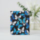 Realistische, blauwe en witte vlinders naadloos op zwarte achtergrond.