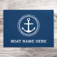 Donkerblauwe of aangepaste kleuromat met een nautisch anker en de naam van uw aangepaste boot