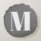 Donkergrijs Initiaal Letter Monogram Modern Rond Kussen
