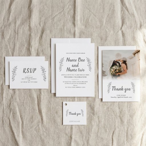 Dit romantische ontwerp brengt een beetje natuur aan elke trouwuitnodiging. Prachtige getrokken bladeren met krullende takken lijst je namen. Met een delicaat manuscriptdoopvont voor de namen en gewaagde duidelijke teksten voor de rest van uw informatie, is dit een uitnodiging die klassiek met hedendaagse stijl combineert. Het vinden van de perfecte ceremonie is hard werken. We willen niet dat je het overdenkt, dus deze uitnodigingen kunnen je leven makkelijker maken, en vertrouwen dat niemand zal shows zonder te weten waar je naartoe moet.