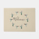 "Welkome" doormat met ruby-troebele kolibrie op een beige achtergrond.