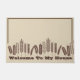 Deze oogst en geluk geïnspireerde deurmat wordt getoond in beige met een print cacao gekleurde bruine tarwe met border trim en de woorden "Welkom in mijn huis". Pas dit object aan of koop zoals het is. Stock Afbeelding freepik.com